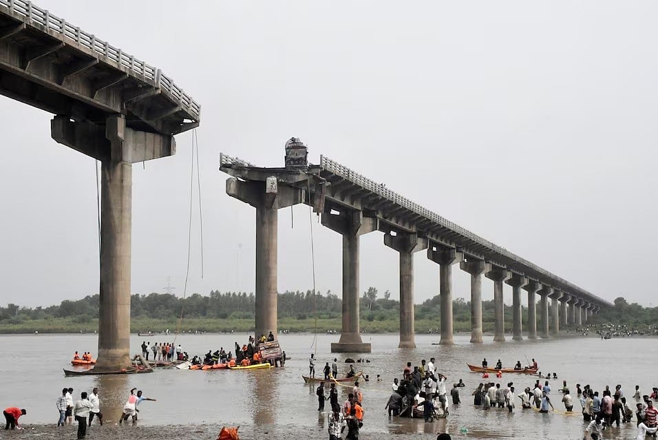 ভারতের গুজরাটের ভদোদরায় মহিসাগর নদীর ওপর নির্মিত ৪৩ বছরের পুরোনো একটি সেতু আজ বুধবার ভোরে ধসে পড়ে। এতে এখন পর্যন্ত অন্তত ১০ জন নিহত হয়েছেন বলে খবর পাওয়া গেছে। এ ছাড়া ৯ জনকে উদ্ধার করা হয়েছে। সেতু ধসে পড়লে বেশ কয়েকটি যানবাহন নদীতে পড়ে যায়।